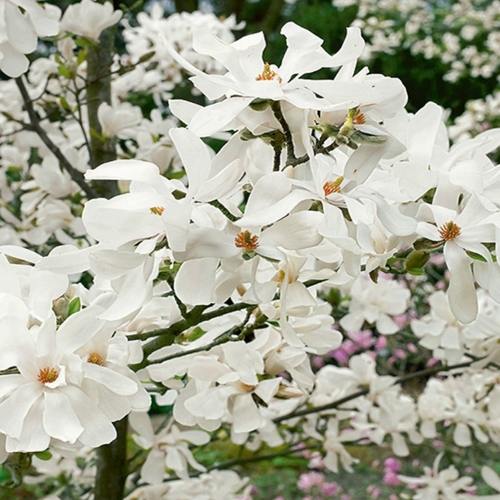 Великолепная магнолия Меррил хороша в одиночной посадке на бархатном газоне или в японском каменистом садике. Групповые композиции из разноцветных магнолий выглядят фантастически. Замечательным контрастом яркому растению служат однотонные хвойники.