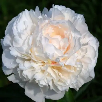 Мазер Чойс обладает средним ростом, достигая высоты в 80 см. Его побеги прямостоячие и сильные, что обеспечивает хорошую устойчивость растению. Зеленые ажурные листья прекрасно контрастируют с крупными, махровыми цветками, достигающими 16 см в диаметре. В их окраске доминирует белый цвет, иногда на кончиках можно заметить малиновый оттенок, что придает цветкам особую изысканность. Цветки симметричны и плотные, что делает их идеальными для срезки – в воде они сохраняются долго, радуя вас своим приятным цветочным ароматом.