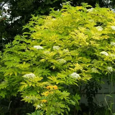 Листья бузины окрашены в желтый цвет, а к осени – темно-зеленые. У них вытянутая форма и неровные края с зубчиками. Цветы светло-бежевого оттенка, собраны в метельчатые соцветия. Плоды после созревания длительное время не осыпаются.