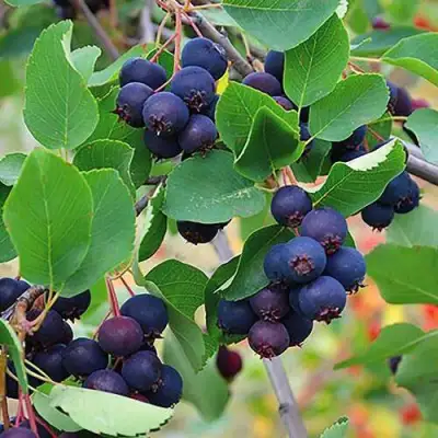 Самый крупноплодный и ранний сорт ирги: диаметр плодов - 1,8-2.2см! Куст высотой 3,5-4м, многоствольный, с округлой кроной, образует мало поросли, что облегчает уход за растением. Цветёт плотными белыми кистями, состоящими из 15-20 цветков. Ягоды крупные, круглые, фиолетово-синие, почти чёрные, с восковым налётом, сочные, сладкие, ароматные, превосходные на вкус! Урожайность высокая и ежегодная. Созревание плодов растянутое (3-4 сбора).Растение хорошо выдерживает низкие температуры, устойчив к болезням и вредителям. Наибольшую ценность сорт представляет в качестве плодового растения, но и чрезвычайную декоративность нельзя сбрасывать со счетов: весной - белая душистая кипень цветков, летом - сочные гроздья синих ягод на фоне бодро-зелёной листвы, осенью - эффектный акцент оранжево-багряных листьев!
