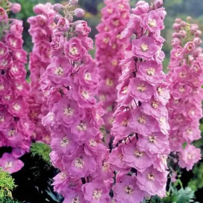 Дельфис Пинк Пауэ — находка для тех, кто ищет нетривиальный цветовой акцент без потери выразительности. Он добавит мягкой строгости в цветник, хорошо сочетается с люпинами, шалфеем, геранью, флоксом и эхинацеей. Надёжен, декоративен, отлично смотрится в срезке. Этот сорт умеет быть ярким без крика — и именно этим он цепляет.