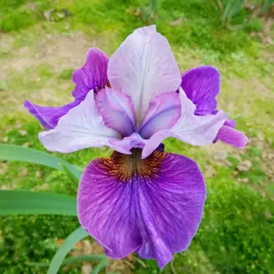 Главная особенность сорта — выразительные двухцветные цветки. Верхние лепестки — нежно-лавандовые, нижние — насыщенно-сиреневые с контрастным золотисто-жёлтым пятном у основания. Цветки среднего размера (до 7 см), собраны в изящные соцветия, появляющиеся с конца мая и до середины июня. Аромат отсутствует, что делает растение идеальным для посадки рядом с зонами отдыха.