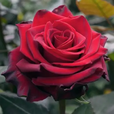 Это чайно-гибридная роза с прямыми, сильными побегами и ярко выраженной вертикальной формой куста. Высота — до 150 см, ширина — около 1 метра. Структура куста плотная, аккуратная. Бутоны — классической формы, крупные (до 10 см), с насыщенным тёмно-красным бархатным оттенком. Цвет лепестков глубокий, почти винный, не выгорает на солнце и не блекнет после дождя. Каждый бутон содержит до 38 лепестков, раскрывается медленно и сохраняет форму в течение 10–12 дней. Идеально для срезки и композиций.