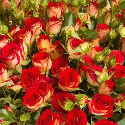 Саженцы розы спрей Рубиэлла могут достигать высоты от 60 до 80 сантиметров. Размер цветка составляет примерно 4-6 сантиметров. Окрас цветка привлекает внимание своей красотой - он красный с желтым реверсом.